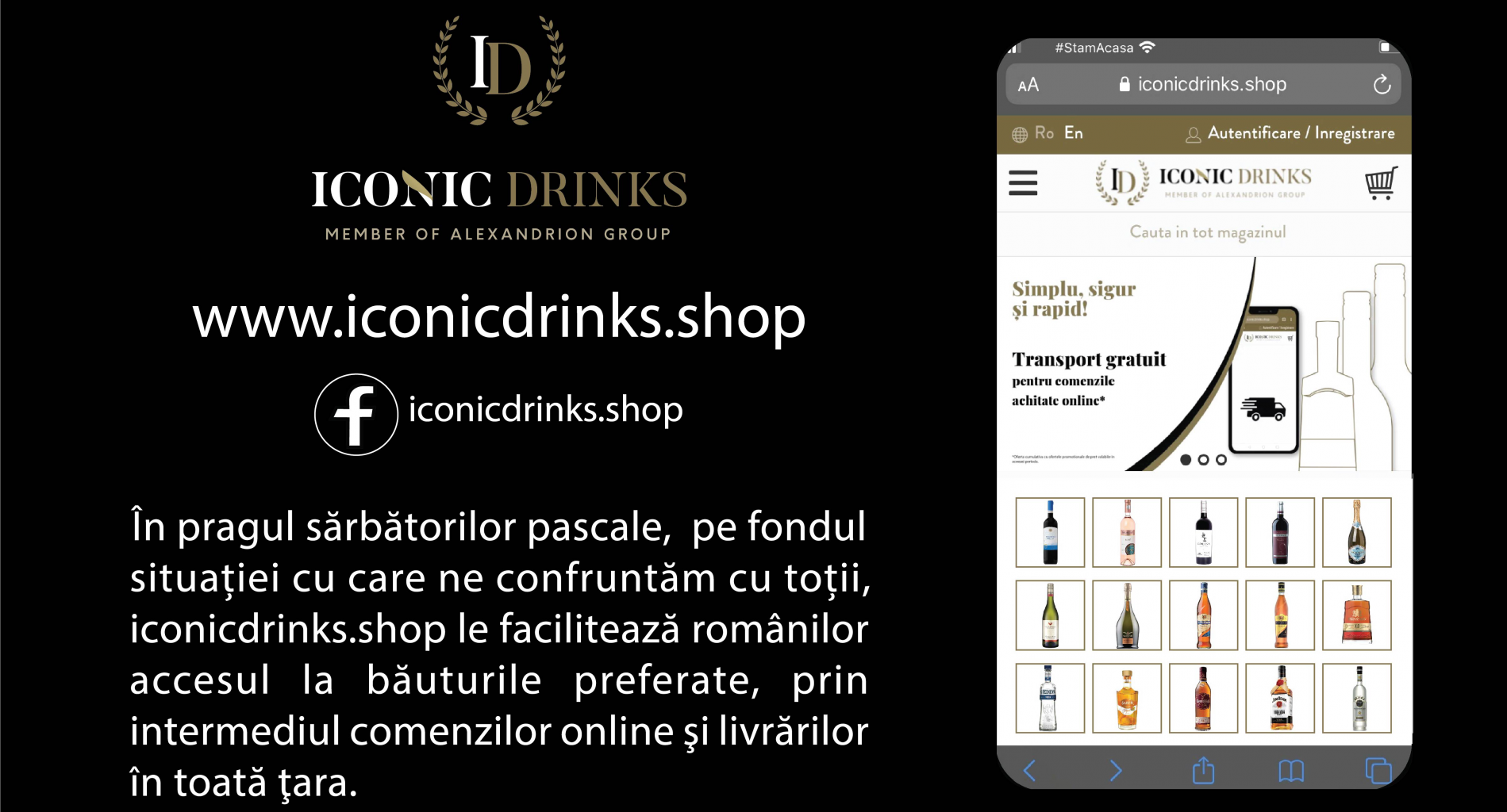 În pragul sărbătorilor pascale, pe fondul situaţiei fără precedent cu care ne confruntăm cu toţii, iconicdrinks.shop le facilitează românilor accesul la băuturile preferate, prin intermediul comenzilor online şi al livrărilor ȋn toată ţara.