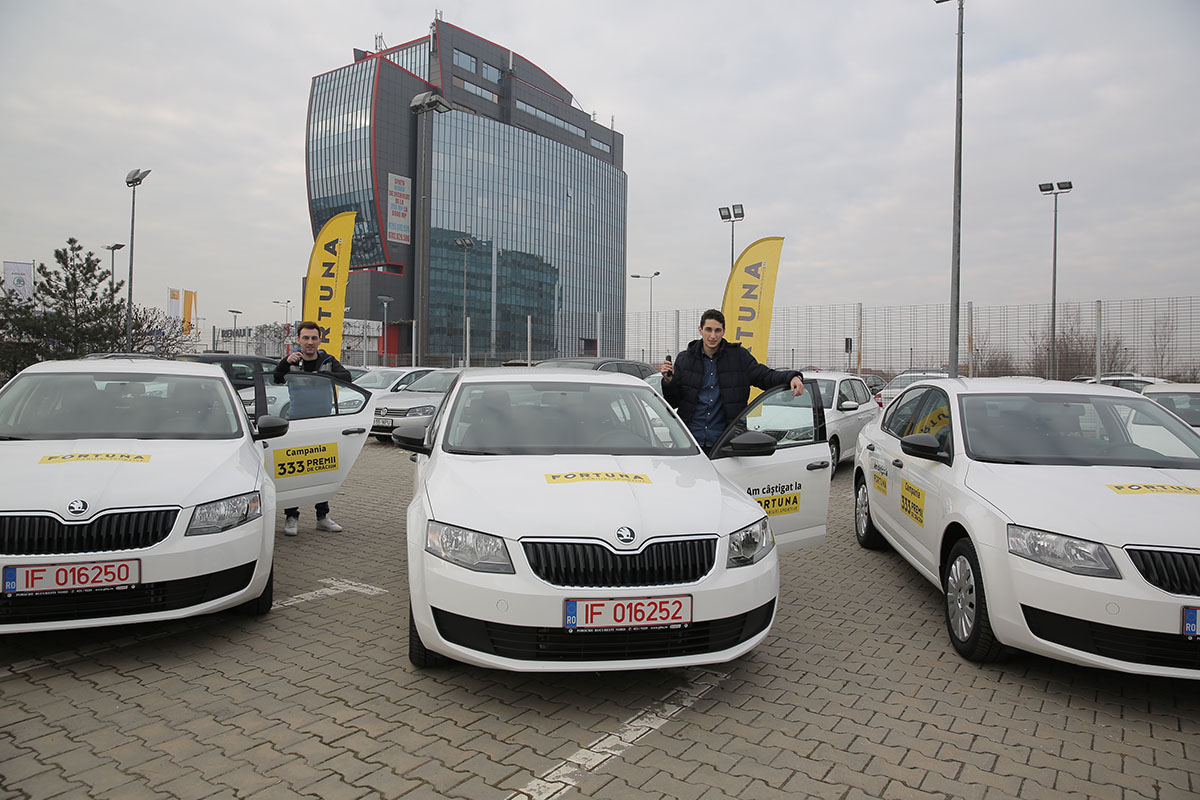 A început operaţiunea de acordare a premiilor pentru Campania „333 Premii de Crăciun” derulată sub brand-ul FORTUNA – Pariuri Sportive! În cursul zilei de 22.12.2016, la sediul firmei s-au prezentat doi din cei trei câştigători ai premiului cel mare, autoturismul Skoda Octavia.