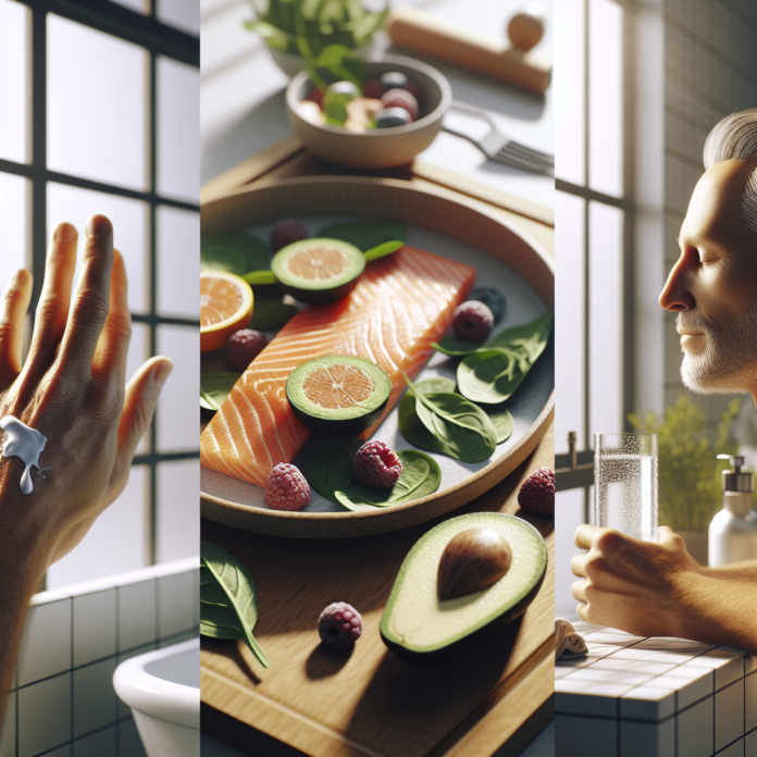 Produsele topice acționează local, dar nutriția modelează substratul: inflamație sistemică, capacitate antioxidantă, hidratare internă. O dietă bogată în omega-3 (pește gras, semințe), antioxidanți (fructe de pădure, legume cu frunze), vitamina C și zinc sprijină sinteza colagenului și repararea cutanată. Evitarea vârfurilor glicemice reduse frecvente (alimente procesate, zaharuri rafinate) scade riscul acneei inflamatorii și al glicării colagenului.