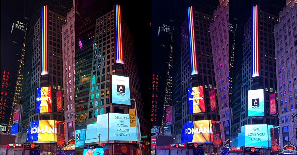 Emoții și dor de acasă pentru românii care au trecut de 1 Decembrie prin Times Square. Drapelul național, munții Carpați, dar și o urare atât în limba română, cât și în limba engleză au putut fi văzute pe 13 ecrane din Times Square, New York City, chiar de 1 decembire, Ziua Națională a României.